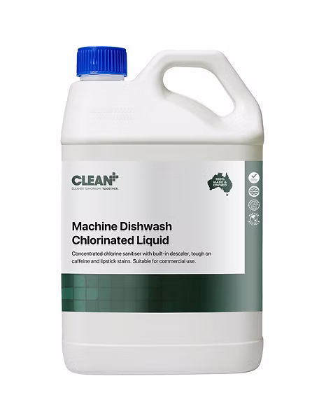Machine Dishwash Chlorinated Liquid is a clear thin liquid with a